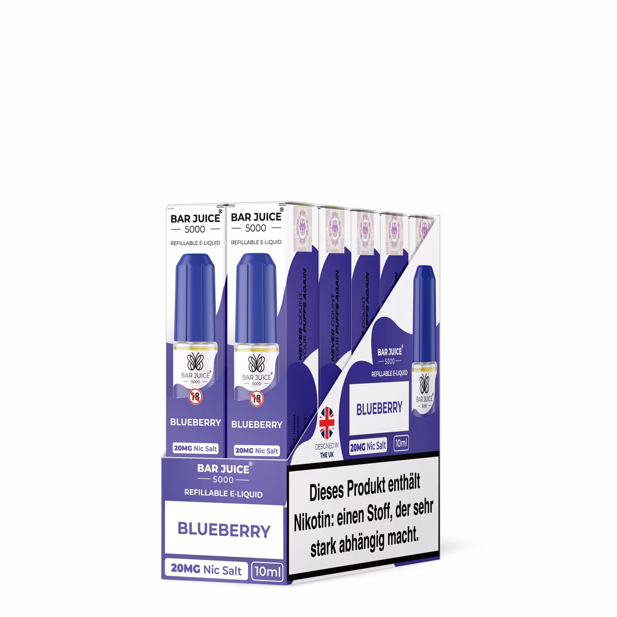 Bar Juice - 5000 - Blueberry | Inhalt : 10ml | Nikotinsalz-Stärke : 20mg | Paketgröße : 1er Packung