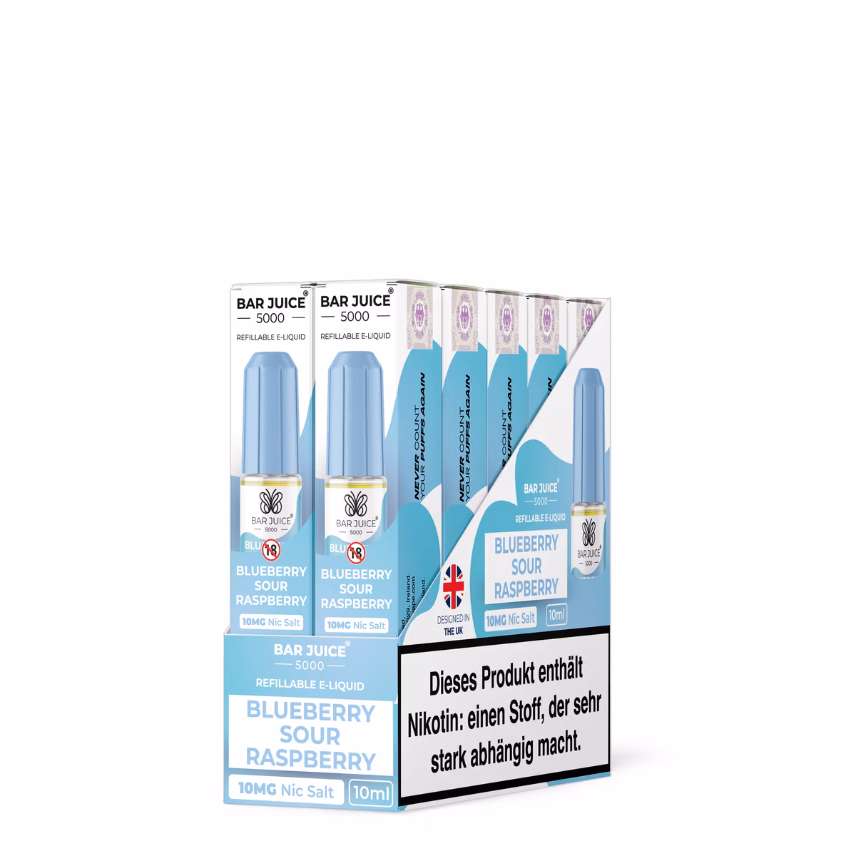 Bar Juice - 5000 - Blueberry Sour Raspberry | Inhalt : 10ml | Nikotinsalz-Stärke : 10mg | Paketgröße : 1er Packung