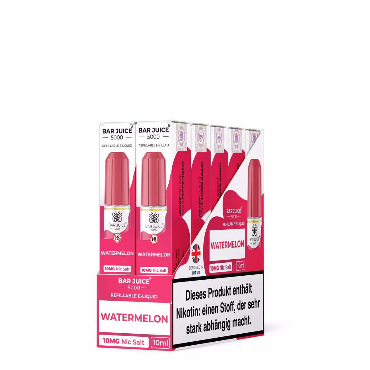 Bar Juice - 5000 - Watermelon | Inhalt : 10ml | Nikotinsalz-Stärke : 10mg | Paketgröße : 1er Packung