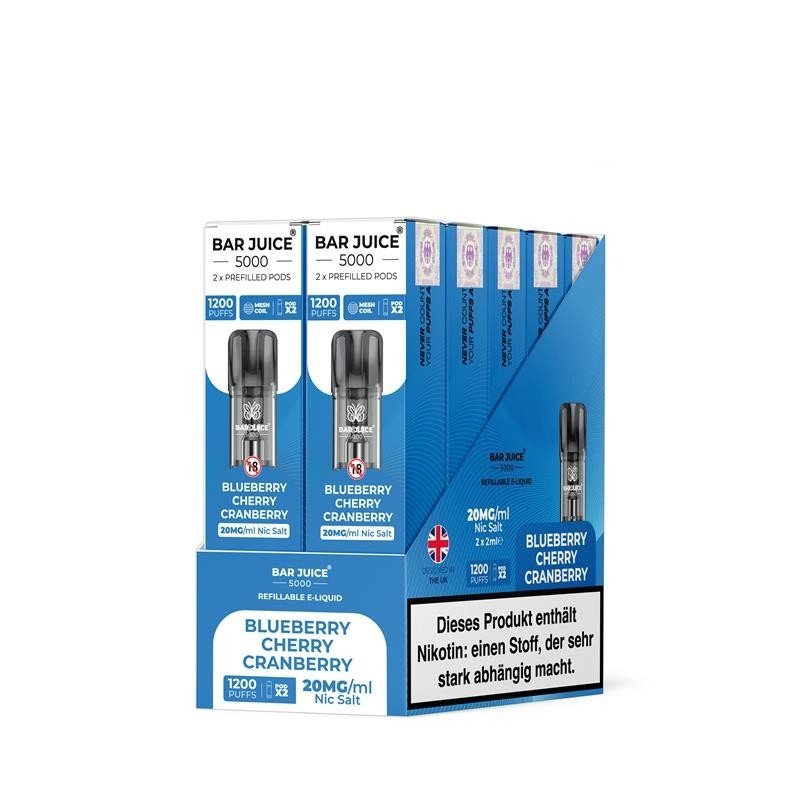 Bar Juice - Prefilled Pods - 2ml - 2er Paket - Blueberry Cherry Cranberry | Nikotinsalz-Stärke : 20mg