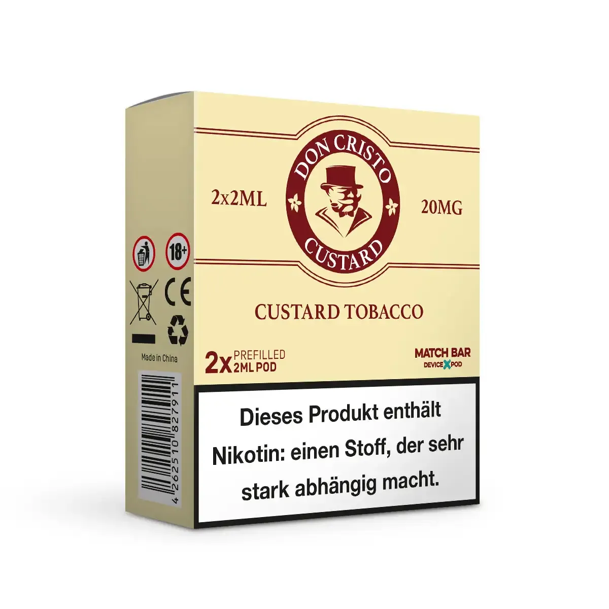 Don Cristo - Prefilled Pods - Custard Tobacco | Nikotinsalz-Stärke : 20mg | Paketgröße : 1er Packung