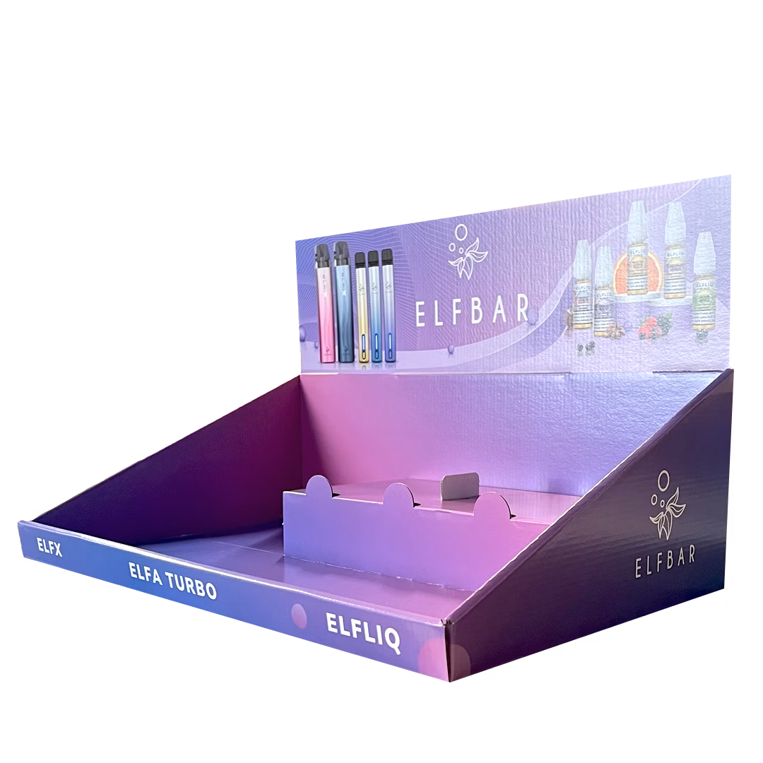 Bringen Sie Ordnung und Stil an Ihren Point of Sale mit dem übersichtlichen, zweiteiligen ELFBAR Thekendisplay. Dieser hochwertige Aufsteller aus Pappe wurde speziell entwickelt, um die Top-Produkte von Elfbar ansprechend und verkaufsfördernd zu präsentieren. Dank seines durchdachten Designs bietet er die perfekte Bühne für die neuesten Systeme wie das Elfbar elfx pro Pod Kit, die Elfa turbo Basisgeräte und die beliebten ELFLIQ Nikotinsalz-Liquids.