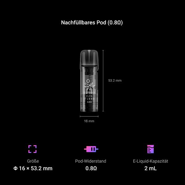 - 1 × ELFA TURBO Pod (0.8 Ohm, 2.0 ml)