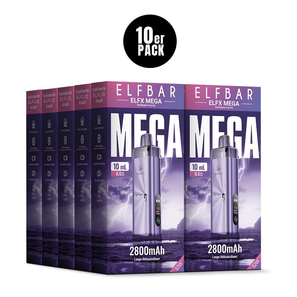 Erlebe die nächste Generation des Dampfens mit dem ELFBAR ELFX Mega Basisgerät. Dieses hochwertige Gerät aus Aluminium vereint elegantes Design mit beeindruckender Leistung und Langlebigkeit. Entwickelt für anspruchsvolle Dampfer, die Wert auf Qualität, Leistung und Flexibilität legen. Entdecke sechs edle Farbvarianten, die deinen persönlichen Stil unterstreichen.