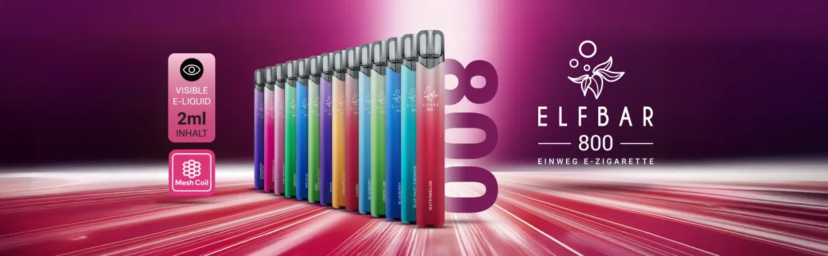 Elfbar 800 Einweg-Pods: Bis zu 800 Züge, Turbo-Funktion und sichtbare Liquidanzeige für Händler & Tankstellen.