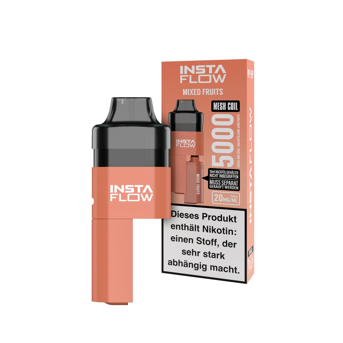- 1x INSTAFLOW 5000 vorbefüllte E-Zigarette Pod System (2 ml Nikotinsalz-Liquid) in ausgewählter Geschmacksrichtung