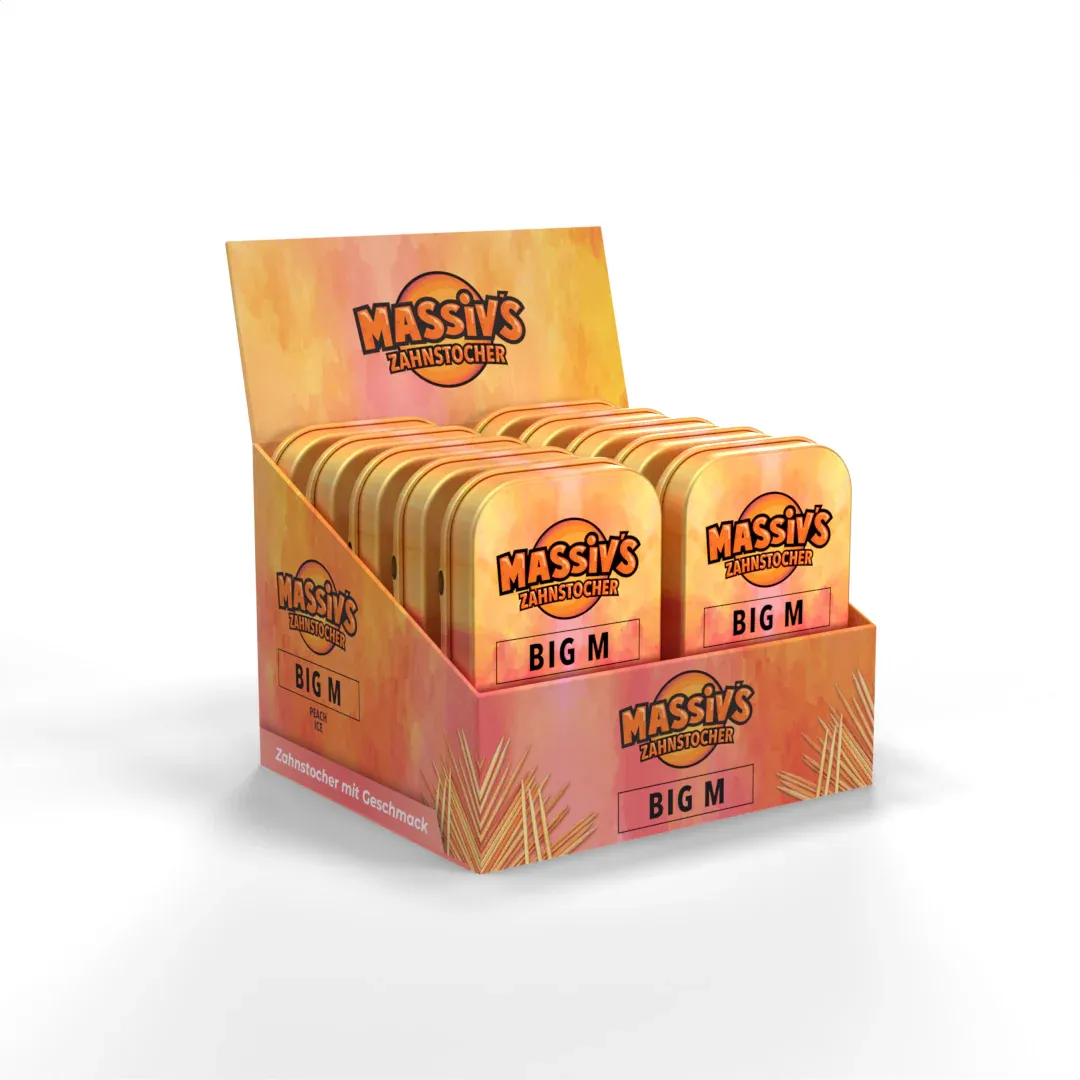 Die Masssiv’ s Zahnstocher sind weit mehr als nur ein praktisches Werkzeug zur Zahnreinigung. Sie sind ein Lifestyle-Statement für die junge Zielgruppe, die Wert auf Style, Geschmack und Funktionalität legt. In enger Zusammenarbeit mit Rapper Massiv entwickelt, vereinen diese Zahnstocher urbanen Lifestyle mit einzigartigen Aromen. Jeder Zahnstocher ist zu 100% vegan und mit rein pflanzlichem Glycerin verfeinert. Die praktische, wiederverwendbare Metalldose enthält 100 nikotinfreie Zahnstocher, die perfekt für unterwegs, nach dem Essen oder einfach zwischendurch sind.