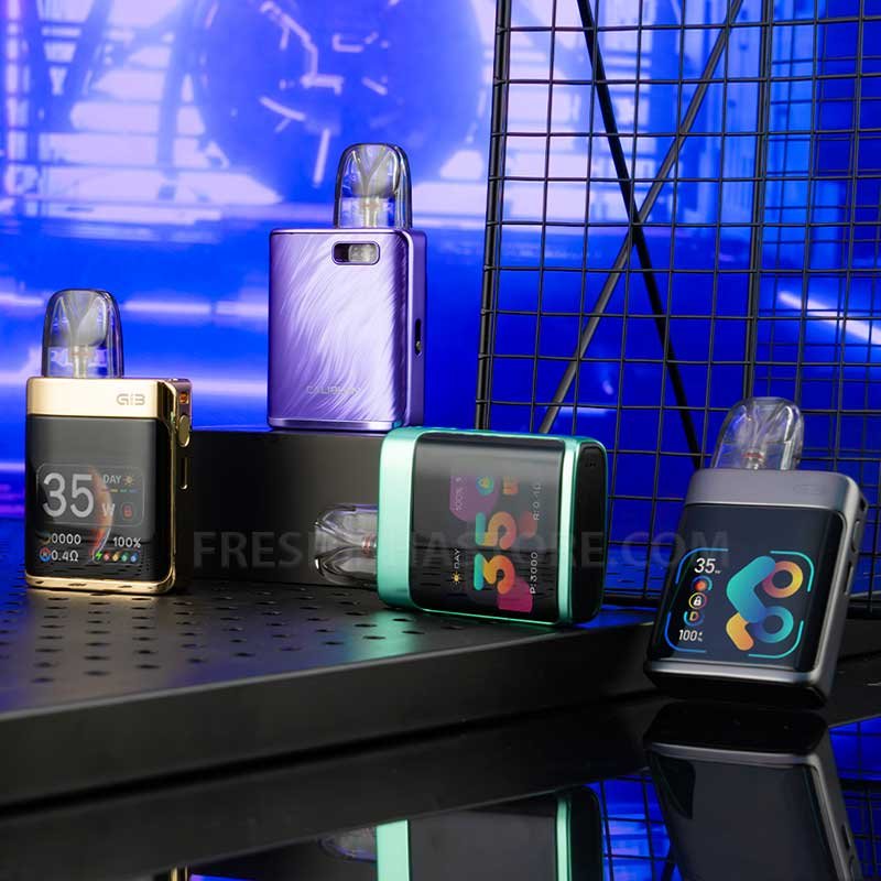 - Kompatibel mit allen beliebten Caliburn G3 Pods (verschiedene Widerstände, Top-/Side-Fill, unterschiedliche Tankvolumen).