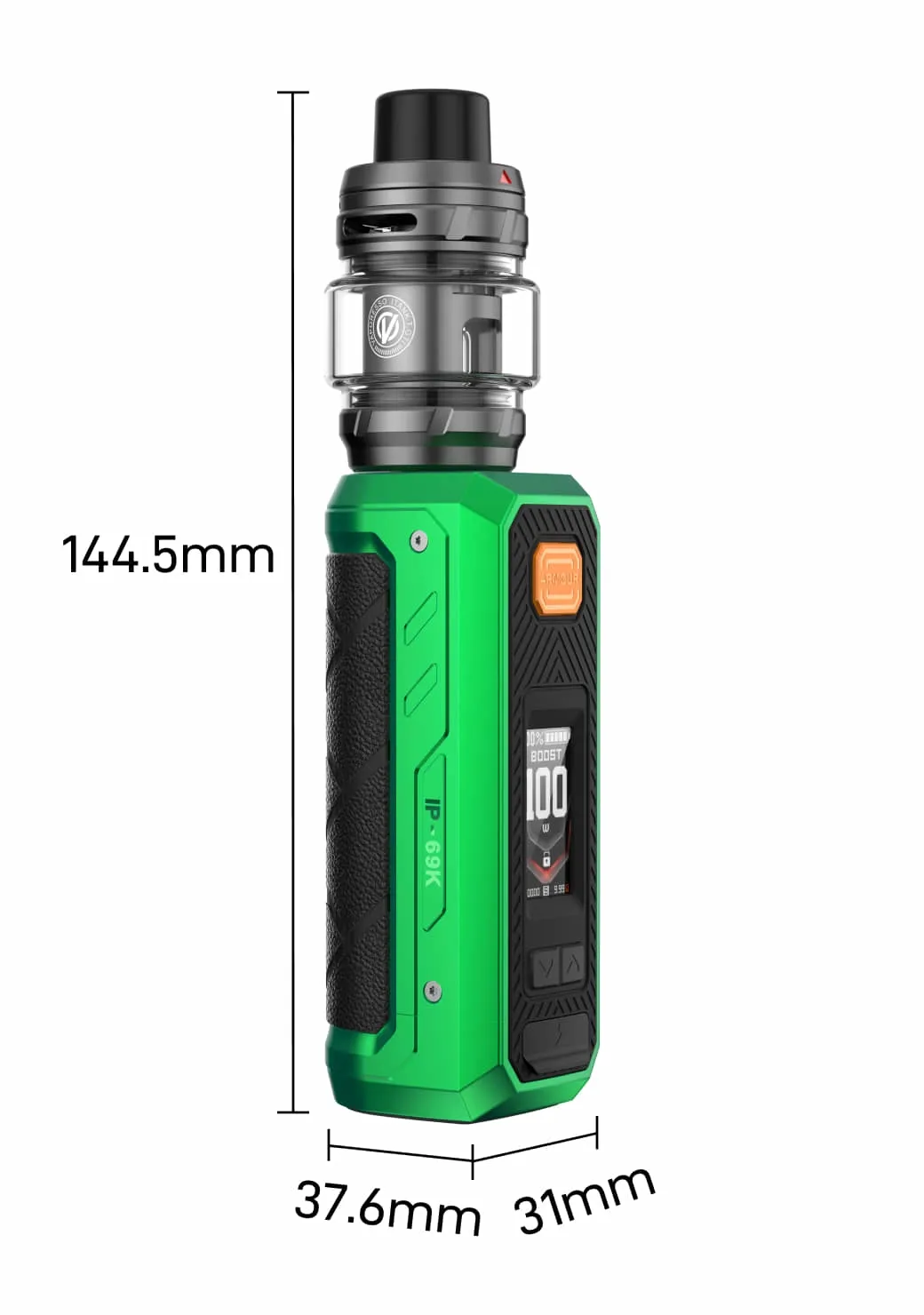 Suchen Sie nach einem E-Zigaretten Set, das sowohl extrem leistungsstark als auch nahezu unzerstörbar ist? Das ARMOUR ULTRA Kit ist die Antwort für anspruchsvolle DL (Direct-to-Lung) Dampfer. Es kombiniert den robusten Armour Ultra Mod mit dem optimierten iTank T Verdampfer zu einem Kraftpaket, das für intensive Geschmackserlebnisse und dichte Wolken konzipiert wurde.