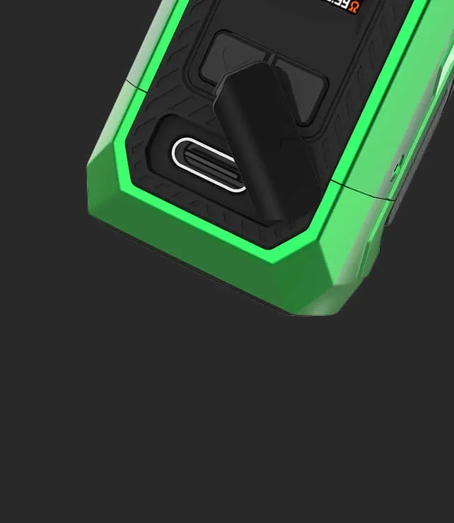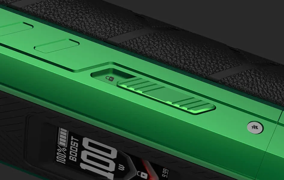 Im Herzen des Mods schlägt ein leistungsstarker, integrierter **5500mAh MEGABATT Akku**, der eine beeindruckende Laufzeit garantiert. Mit einer maximalen Ausgangsleistung von **100 Watt** befeuert er mühelos auch leistungshungrige Verdampfer. Die Steuerung erfolgt intuitiv über dedizierte Tasten, ergänzt durch einen praktischen seitlichen Lock-Switch zur schnellen Sicherung. Der intelligente AXON Chipsatz sorgt für konstante Top-Performance und bietet verschiedene Modi: