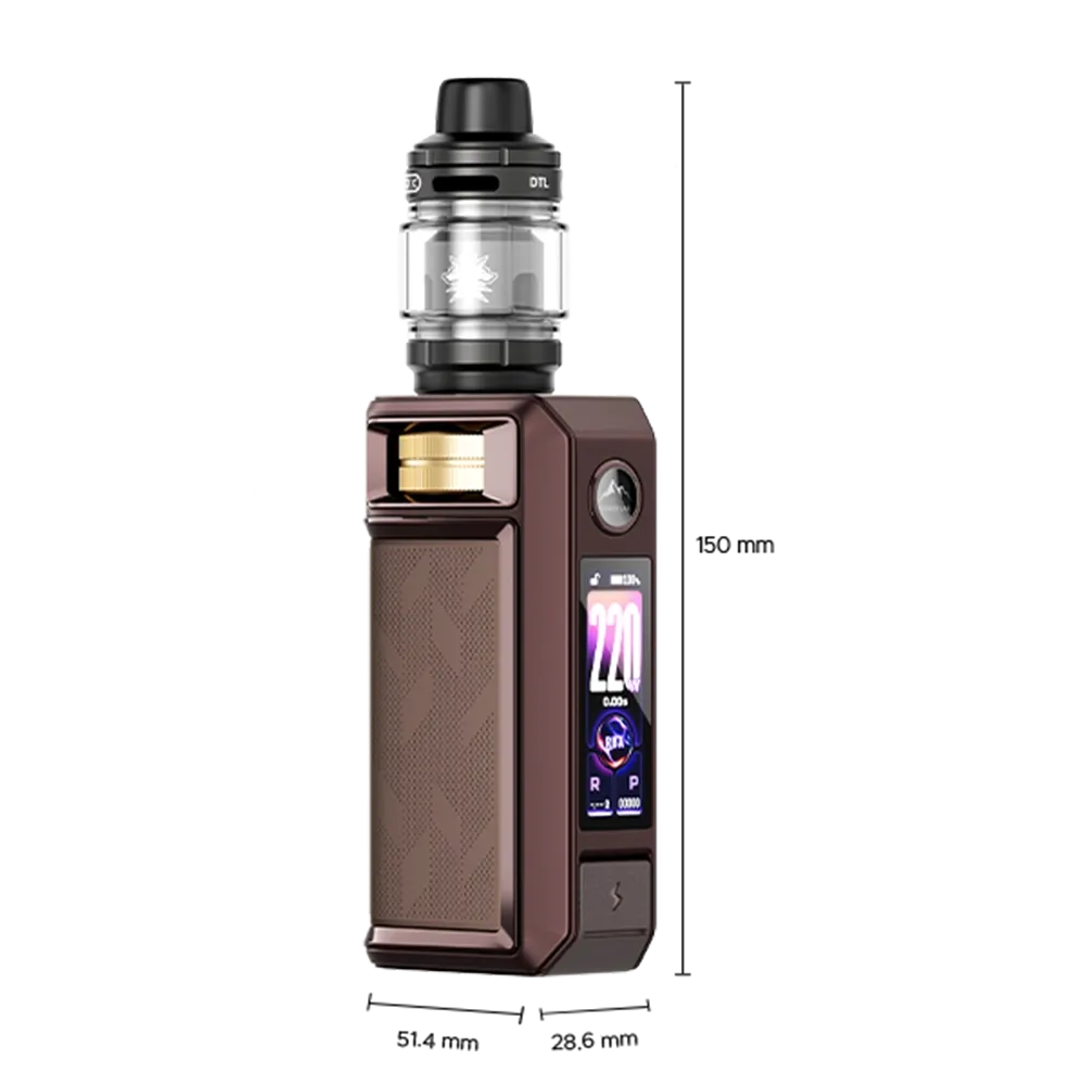 Die Bedienung wird durch eine Kombination aus ergonomischem Feuerbutton und einem großzügigen, massiven Drehregler unterhalb der 510er-Plattform revolutioniert. Dieser Regler liefert haptisches und akustisches Feedback und ermöglicht die schnelle Anpassung der Wattzahl. Das 1.66 Zoll große TFT Farbdisplay stellt alle wichtigen Infos wie Akkustand, Leistung und Zugstatistik übersichtlich dar. Zudem bietet das Menü drei Display-Themes und eine Option zur Deaktivierung der Vape-Animation.