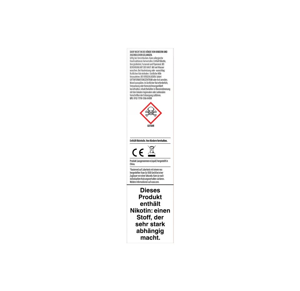 Die Vuse Go 1000 ist mit 20mg Nikotin erhältlich, um ein befriedigendes Dampferlebnis zu gewährleisten.